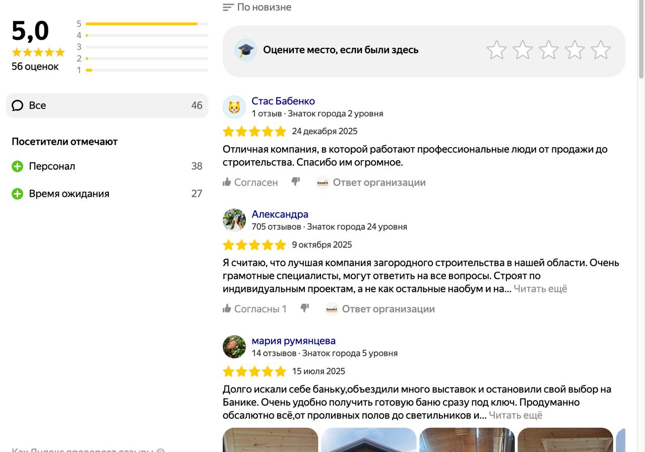 реальных отзывов, где чаще всего отмечают: честность, аккуратность, соблюдение сроков и тепло бани даже через 5 лет эксплуатации.
